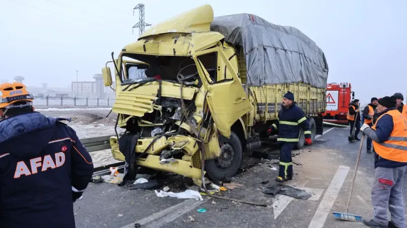 Kaza Aksaray – Konya Karayolu Ticaret Borsası Kavşağında meydana geldi. Alınan bilgiye göre, Konya’dan Aksaray istikametine seyreden Hüseyin G. (43) idaresindeki 20 H 6109 plakalı kamyon, cezaevi kavşağında kırmızı ışıkta bekleyen Mehmet T. (60) idaresindeki 68 HZ 909 plakalı kamyona arkadan çarptı. Kaza sonucu çarpan kamyonun kabini hurdaya döndü. Sürücü Hüseyin G. kabin içinde sıkışırken kazayı gören diğer sürücüler durumu hemen 112 Acil Çağrı Merkezine ihbar etti. İhbar üzerine olay yerine polis, itfaiye, İl Afet Acil ( AFAD) ve Ulusal Medikal Kurtarma (UMKE) ekipleri sevk edildi. Kısa sürede olay yerine gelen ekipler hemen kurtarma çalışmasına başlarken, polis ekipleri karayolunda güvenlik önlemleri alarak trafiği kontrol altına aldı. İtfaiye, AFAD ve UMKE ekipleri kabinde sıkışan sürücüye ilk müdahaleyi kabin içinde yaptı. Ardından kurtarma çalışması başlarken, adeta can pazarının yaşandığı kabin içinde sürücünün “Ayağım” feryadı yürekleri dağladı. Sıkışan sürücü itfaiye, AFAD ve UMKE ekiplerinin yarım saat süren çalışması sonucu kurtarılırken, sedyeyle ambulansa ve daha sonra da Aksaray Eğitim ve Araştırma Hastanesi Acil Servisine kaldırıldı. Burada tedavi altına alınan sürücünün sağlık durumunun ağır olduğu öğrenilirken, İl Emniyet Müdürlüğü Olay Yeri İnceleme Şubesi ekipleri kaza mahallinde geniş çaplı incelemeler yaptı. Diğer kamyon sürücüsü ifadesi alınmak üzere polis merkezine götürülürken kazayla ilgili Aksaray Cumhuriyet Başsavcılığınca tahkikat başlatıldı.