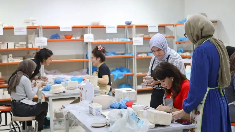 Kil ve çamur gibi doğal malzemelerin sanata dönüştüğü seramik kursları, özellikle dikkat çekiyor. Kadınlar, kendi elleriyle yaptıkları seramik ürünlerle hem keyifli bir süreç yaşıyor hem de özgün eserler ortaya koyuyor.