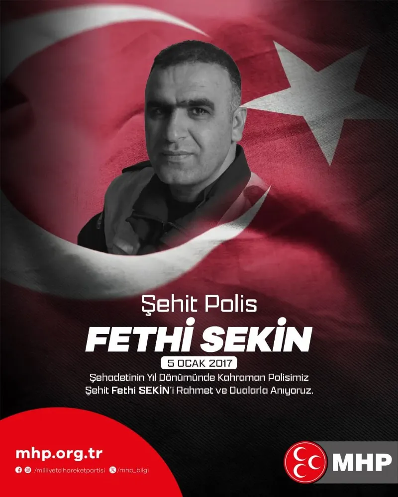 MHP Aksaray İl Teşkilatı tarafından yapılan açıklamada, "Fethi Sekin’in adı bu milletin kalbinde ebediyen yaşayacaktır. Onun aziz hatırası, vatan sevgisinin en onurlu simgesidir" ifadelerine yer verildi. Tüm teşkilat, şehidimizi dualarla andı.