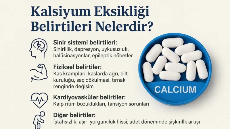 Kalsiyum eksikliği her bireyde farklı semptomlarla kendini gösterebilir. En sık görülen belirtiler şunlardır: