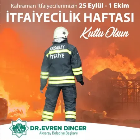Aksaray Belediye Başkanı Dr. Evren Dinçer, yaptığı açıklamada itfaiyecilerin özverili çalışmalarını takdirle karşıladığını ifade etti. Dinçer, "İtfaiyecilerimiz, sadece bir meslek değil, aynı zamanda bir yaşam tarzı benimsemişlerdir. Onların fedakarlıkları sayesinde huzurlu bir şehirde yaşıyoruz. Bu vesileyle tüm itfaiyecilerimizin İtfaiyeciler Haftası'nı kutlar, çalışmalarında kolaylıklar dilerim" dedi.
