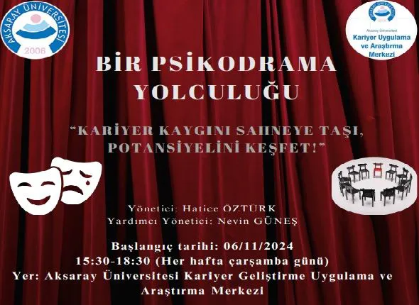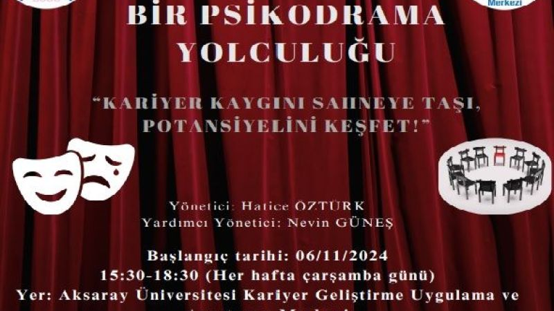 Merkezin, kaygıyla mücadele etme sürecini kolaylaştıracak Psikodrama grup çalışması, 6 Kasım 2024’te başlayacak. Düzenlenecek programla öğrencilerin kariyer kaygılarının altında yatan sebepler değerlendirilecek ve sorunlarla başa çıkma mekanizmaları güçlendirilecek. Çalışma, öğrencilerin kariyer gelişimi süreçlerinde yaşadıkları sorunları sahnelemelerine ve içsel süreçlerini anlamalarına yardımcı olacak. Uygulamanın, öğrencilerin kariyer stresleri ve kaygıları odağında içsel yaşamlarına dair farkındalık kazanmalarına, duygusal ve sosyal açıdan beceri gelişimlerinin desteklenmesine hizmet etmesi hedefleniyor.