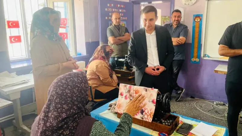 Eskil İlçesi Kaymakamı Fuat Yurddaş, İkizce İlkokulu bünyesinde Halk Eğitim Merkezi tarafından açılan Dikiş Nakış Kursu’nu ziyaret etti. Ziyaret kapsamında kursiyer kadınlarla bir araya gelen Kaymakam Yurddaş, onların çalışmalarını yerinde görerek sürece dair bilgi aldı.