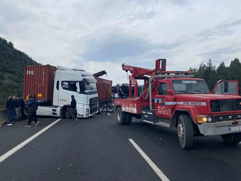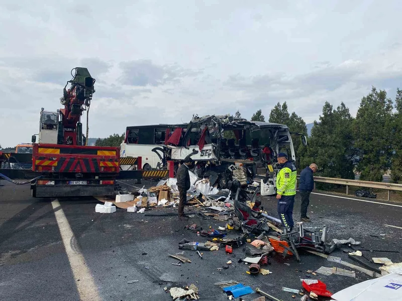 Aynı anda orta şeritten seyir halinde olan, İzmir'den Gaziantep'e giden ve A.A. (42) idaresindeki 27 AVD 454 plakalı yolcu otobüsü, duran çekiciye arkadan çarptı. Şiddetli çarpışma otobüste büyük hasara yol açtı ve bazı yolcular enkaz içinde sıkıştı.