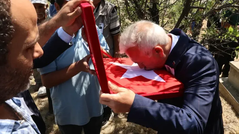 Defin işleminin ardından Vali Kumbuzoğlu, Gazi Ceylan Altunkaya’nın tabutuna sarılı Türk Bayrağı’nı öperek oğulları Muhsin ve Baki Altunkaya’ya teslim etti. Tören, duygusal anlara sahne oldu.