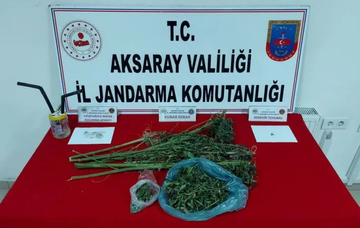 Edinilen bilgiye göre, uyuşturucuyla mücadele çerçevesinde çeşitli çalışmalar yapan İl Jandarma Komutanlığı Kaçakçılık ve Organize Suçlarla Mücadele (KOM) Şubesi ekipleri, merkez ilçe mülki sınırları içerisinde bir ikamette uyuşturucu yetiştirildiğini ve ticareti yapıldığı bilgisine ulaştı. Aksaray Cumhuriyet Başsavcılığı koordinesinde harekete geçen jandarma ekipleri, S.G. isimli şahsa ait müstakil ikamete operasyon düzenledi. Gerçekleştirilen operasyonda şahsı yakalayarak gözaltına alan jandarma ekipleri evde geniş çaplı arama yaptı. Yapılan aramalarda ikametin çatısında kiremitler altında gizli bölmeyi tespit eden jandarma ekipleri çatıdan kiremitleri kaldırarak gizli bölmeye ulaştı. Bölmede 900 gram kubar esrar, bir miktar kenevir bitkisi, 1 gram kenevir tohumu, 3 adet uyuşturucu kullanma aparatı ele geçirdi. Gözaltına alınan şüpheli sorgulanmak üzere İl Jandarma Komutanlığına götürülürken olayla ilgili soruşturma başlatıldı.
