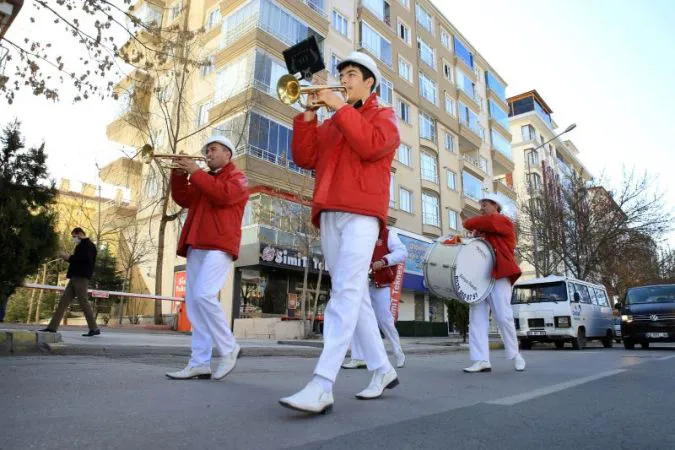 Aksaray Belediyesi hafta sonu 2 gün sürecek olan sokağa çıkma kısıtlamasında 6 kişilik özel bando takımı eşliğinde vatandaşların evlerinde sıkılmaması için sokak konseri düzenledi. Cadde ve sokakları adeta konser sahnesine çeviren kırmızı beyaz kostümlü bando takımı mahalle mahalle gezerek vatandaşlara enstrümanlarla çeşitli müzikler seslendirdi. Pencere ve balkonlarından bando takımının konserini izleyen vatandaşlar doyasıya eğlenirken, bando takımı gün boyu sokak sokak melodi eşliğinde konserini sürdürüyor.