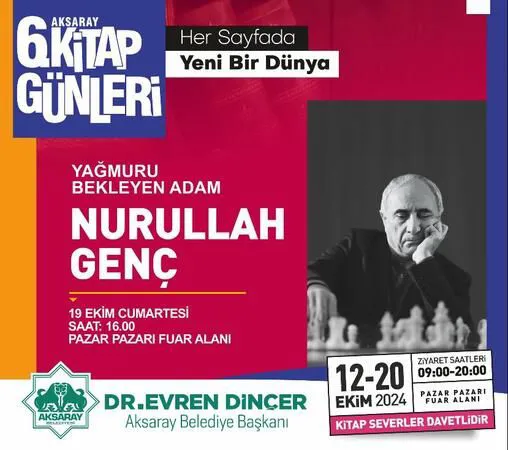 Nurullah Genç ise “Yağmuru Bekleyen Adam” ve diğer eserleri hakkında detaylı bilgiler vererek, okurlarıyla birebir sohbet imkânı sunacak. Genç, derinlikli ve anlamlı eserleriyle geniş bir okuyucu kitlesine sahip.