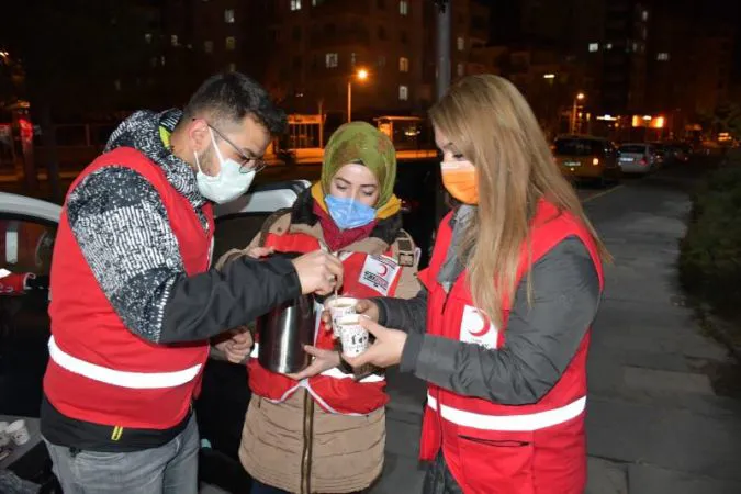 Korona Virüs tedbirleri çerçevesinde uygulanan sokağa çıkma kısıtlaması kapsamında kentin birçok bölgesinde görev alarak denetim ve uygulamalar yapan polis ekiplerine Türk Kızılay’ı Kadın ve Gençlik Kollarından çay ile kahve servisi yapıldı. Kızılay ekibi, ellerinde termoslarla cadde cadde gezerek polislere çay kahve servisi yaptı. Kızılay ekibi polislerle de sohbet ederek çalışmalarında kolaylıklar diledi.