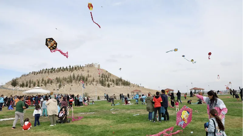 Aileleriyle alanda eğlenen çocuklar, uçurtmalarını uçurarak Kayseri semalarını renklendirdi.