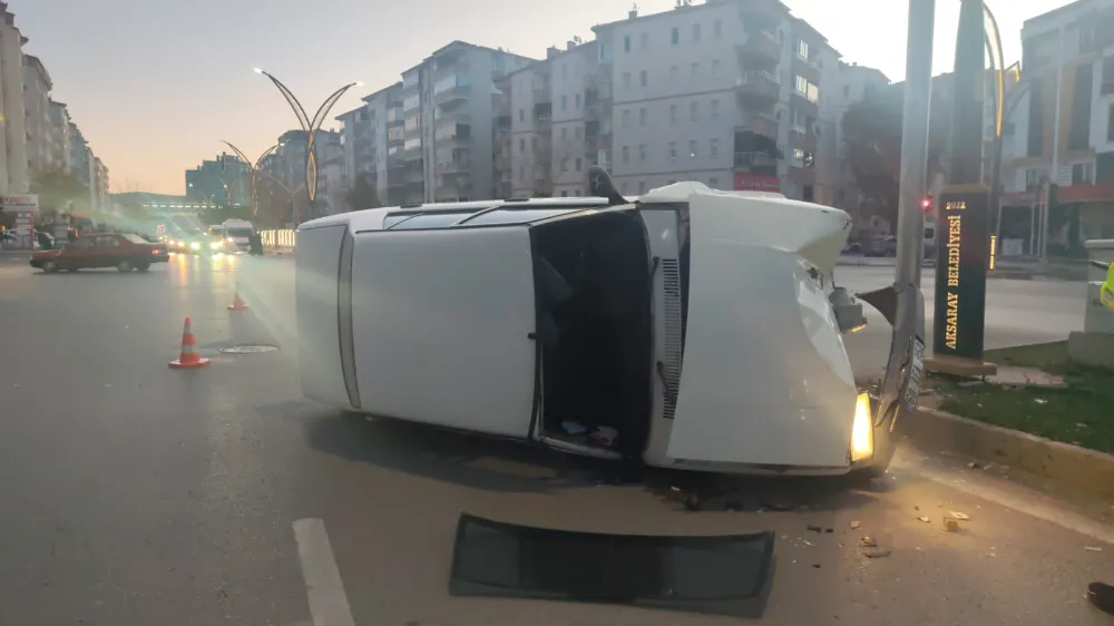 Aksaray Atatürk Bulvarı’nda sabah saatlerinde meydana gelen trafik kazasında otomobil MOBESE direğine çarparak yan devrildi. Kazada 1 kişi hafif şekilde yaralandı.