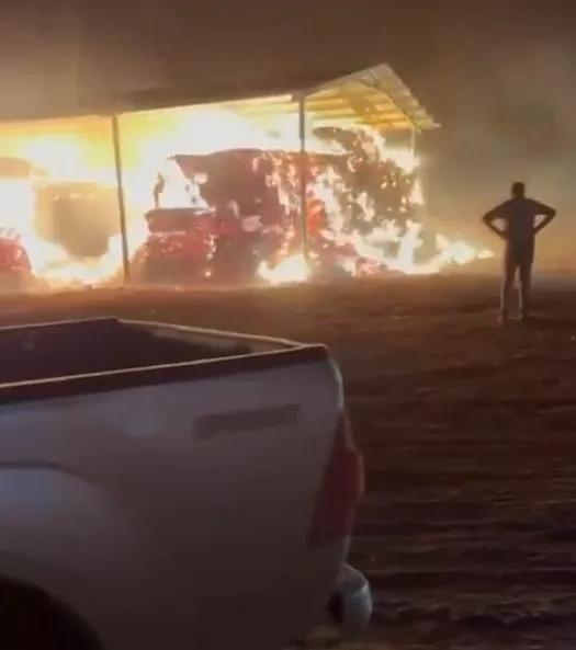 Fırtına, Kuskuncuk Mahallesi'nde de ikinci bir yangına neden oldu. İddiaya göre, rüzgarla taşınan köz halindeki ateş, bir çiftlikteki saman balyalarına sıçradı. Kısa sürede büyüyen alevler, saman balyalarını tamamen sardı.