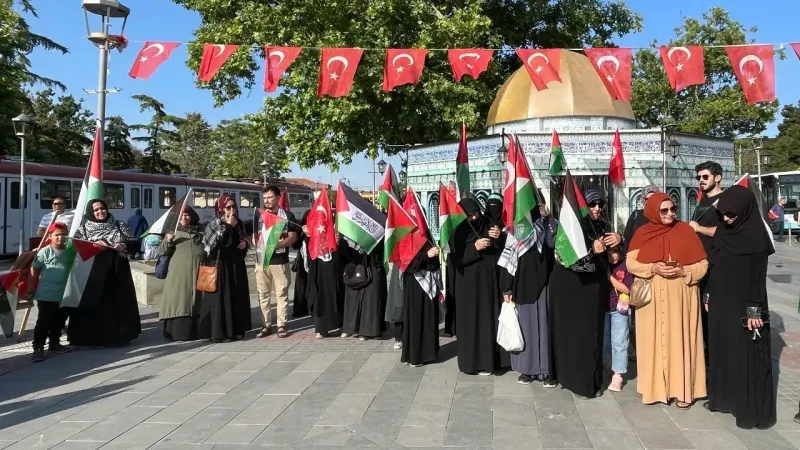 Kültür Park Meydanı’nda toplanan kadınlar, İsrail’in Gazze’ye yönelik saldırılarını lanetlemek ve "Küresel Gazze Yürüyüşü"ne destek vermek için bir gösteri düzenledi. Göstericiler, tekbir getirerek “Vicdanın sesini duy harekete geç”, “Ölümü gözümüzde büyütmüşüz, ölüm Gazze'de çocuk işi” yazılı pankartlar taşıdı.
