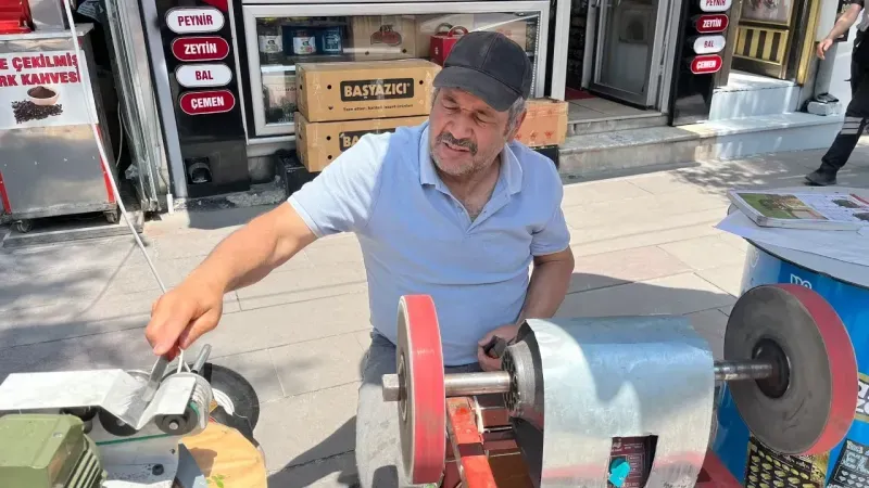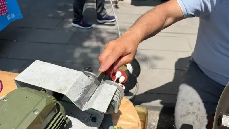 Aksaray’da uzun yıllardır bıçakçılık yapan Mustafa Ölçekci, yaklaşan bayramla birlikte artan talepleri değerlendirdi. Ölçekci, “Şu an bıçakların ağızlarını açıyoruz, bileyleme yapıyoruz. Satırdan diğer kesici aletlere kadar her çeşit ürünümüz var. Hizmetimizi güvenle sunuyoruz,” diyerek süreci anlattı.