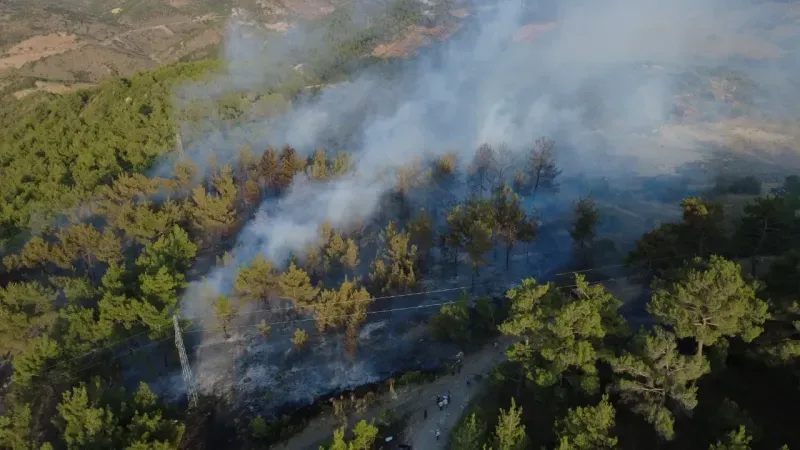 Manisa’nın Demirci ilçesine bağlı Çataloluk Mahallesi Seyit Ahmet mevkiinde çıkan orman yangını, kısa sürede büyüyerek geniş bir alana yayıldı. Yangının çıkış nedeni henüz belirlenemezken, kızılçam ağaçlarıyla kaplı ormanlık alan alevlere teslim oldu.