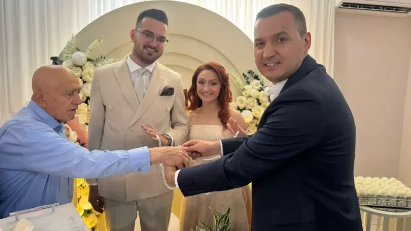 Törende kısa bir konuşma yapan Turan Yaldır, “Yeğenim Esra ve Mustafa’nın bu güzel başlangıcına tanıklık etmekten onur duyuyorum. Allah tamamına erdirsin inşallah, bir ömür boyu mutluluk ve huzur diliyorum” dedi.