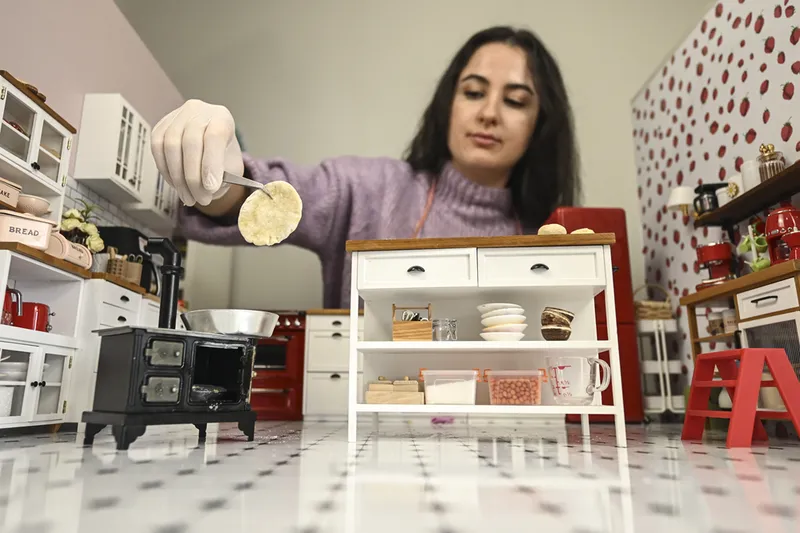 Tuğçe Ünveren, ilk minyatür mutfağını minik bir bavulun içine kurduğunu ve eşyaları burada biriktirmeye başladığını anlatıyor. Yurt dışından ürün getirebileceğini bilmediği için dolapları kendi eliyle tahta ve testere kullanarak yapan Ünveren, 35'e 50 santimetre boyutlarındaki bu ilk mutfakta musluktan gerçekten su aktığını belirtiyor. Mutfağı, kurulduğu günden bu yana birkaç kez dönüşüm geçirdi ve hobisi iki yıl önce tam zamanlı bir mesleğe evrildi.