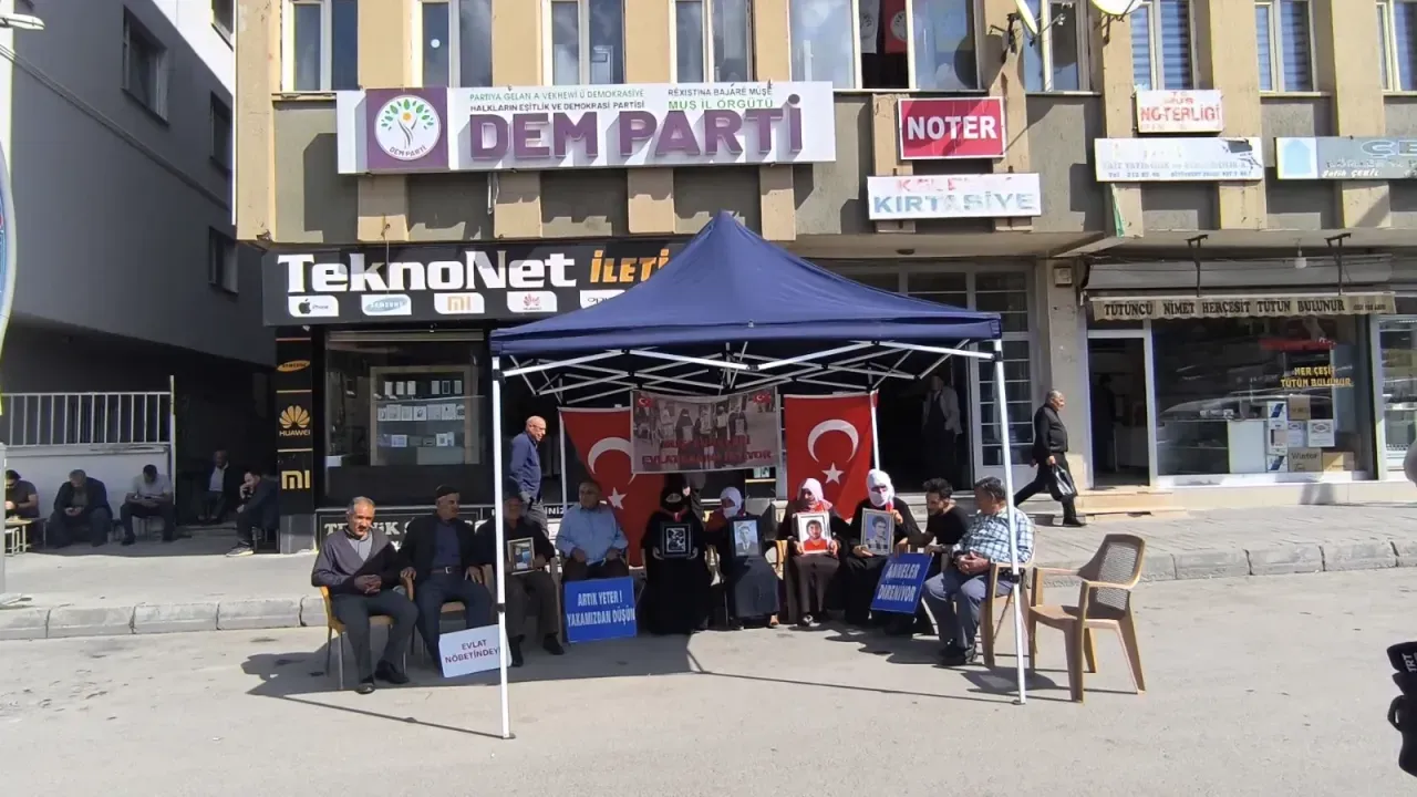 Muş’ta çocuklarının terör örgütü PKK tarafından dağa götürülmesinden DEM Parti’yi sorumlu tutan aileler, parti il binası önündeki eylemlerini kararlılıkla sürdürüyor. Aileler, her hafta çarşamba günü bir araya gelerek çocuklarına teslim olmaları çağrısında bulunuyor.