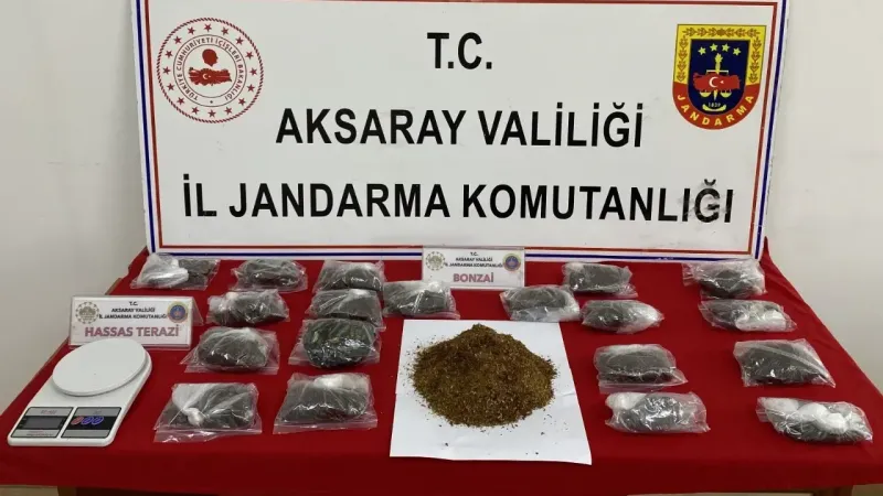 İl Jandarma Komutanlığı KOM ekipleri, Aksaray merkezde uyuşturucu ticareti yapan iki şahsı teknik ve fiziksel takibe aldı. Ş.C. ve B.C. isimli şahısların adresleri tespit edildikten sonra operasyon için düğmeye basıldı. Evde yapılan aramada narkotik köpeği sayesinde baza altına gizlenmiş 1 kilo 464 gram bonzai, hassas terazi ve aseton sıvısı ele geçirildi.