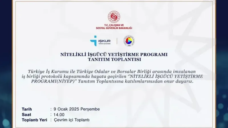 Toplantının amacı, NIYEP protokolünün içeriği, işleyişi ve iş gücü piyasasına sağladığı katkılar hakkında bilgi vermek ve katılımcıların sorularını yanıtlamaktır. Bu protokolün uygulanmasıyla, iş gücü piyasasında daha kalifiye ve verimli bireylerin yer alması beklenmektedir.