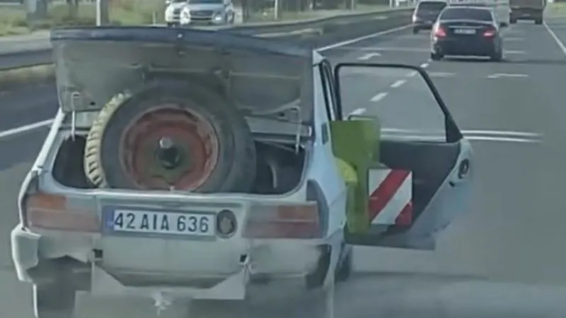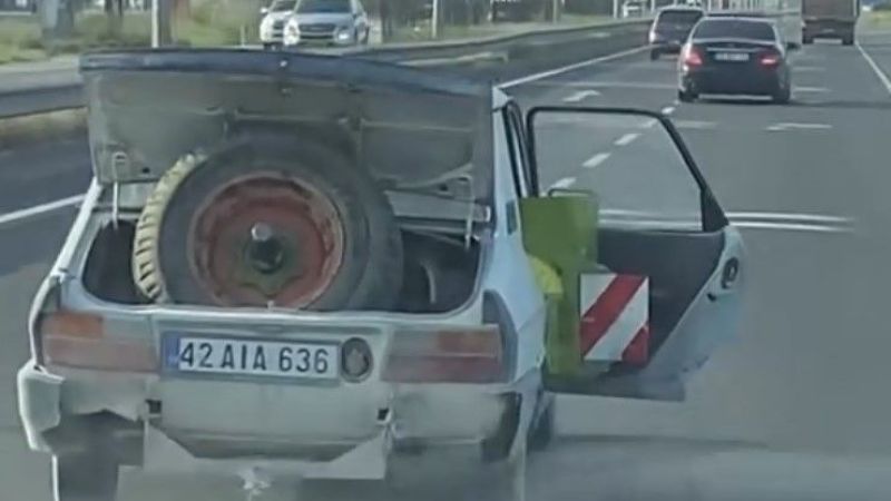 Olay geçtiğimiz gün Aksaray – Adana Karayolunda meydana gelmişti. Alınan bilgilere göre, aracına yüklediği eşyaları sığdıramayan sürücü bagaj kapısı ve sağ arka kapısı açık şekilde trafiğe çıktı. Adana Karayolundan Aksaray istikametine seyrede sürücü hem kendi canını hem de trafikteki onlarca sürücünün canını hiçe sayarak seyretmiş, bir başka araçtaki yolcu tarafından da cep telefonu kamerasıyla görüntülenmişti. Görüntülerin ortaya çıkması ile birlikte harekete geçen Aksaray İl Emniyet Müdürlüğü Trafik Tescil ve Denetleme Şube Müdürlüğü ekipleri kısa sürede araç sürücüsünü belirledi. S.H. isimli sürücünün ehliyetine 2 ay süreyle el koyulurken kara yolları trafiğini tehlikeye düşürmekten de 4 bin 239 lira para cezası kesildi.
