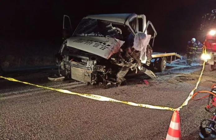 Kamyon ile çekici kamyonetinin kafa kafaya çarpışması sonucu meydana gelen trafik kazasında 1 kişi hayatını kaybetti.