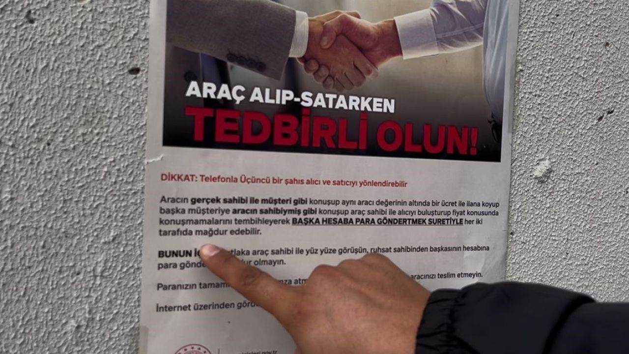 Araç satışı sırasında alıcının yaptığı ödeme Karadeniz’in hesabına geçmedi. Bu sırada duvarda “Araç alım-satımında ödemeyi mutlaka ruhsat sahibine yapın” yazılı polis broşürünü gören Karadeniz durumu fark etti. Hemen 112’yi arayarak polise haber verdi. Kısa sürede gelen ekipler, dolandırıcılığı son anda engelledi. Şüphelinin alıcıdan parayı kendi IBAN’ına yönlendirmeye çalıştığı öğrenildi.