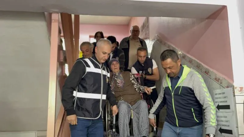 Oy kullanmak için tekerlekli sandalyeyle okula gelen 66 yaşındaki parkinson hastasını, görevli polis memurları sandık salonuna taşıdı.