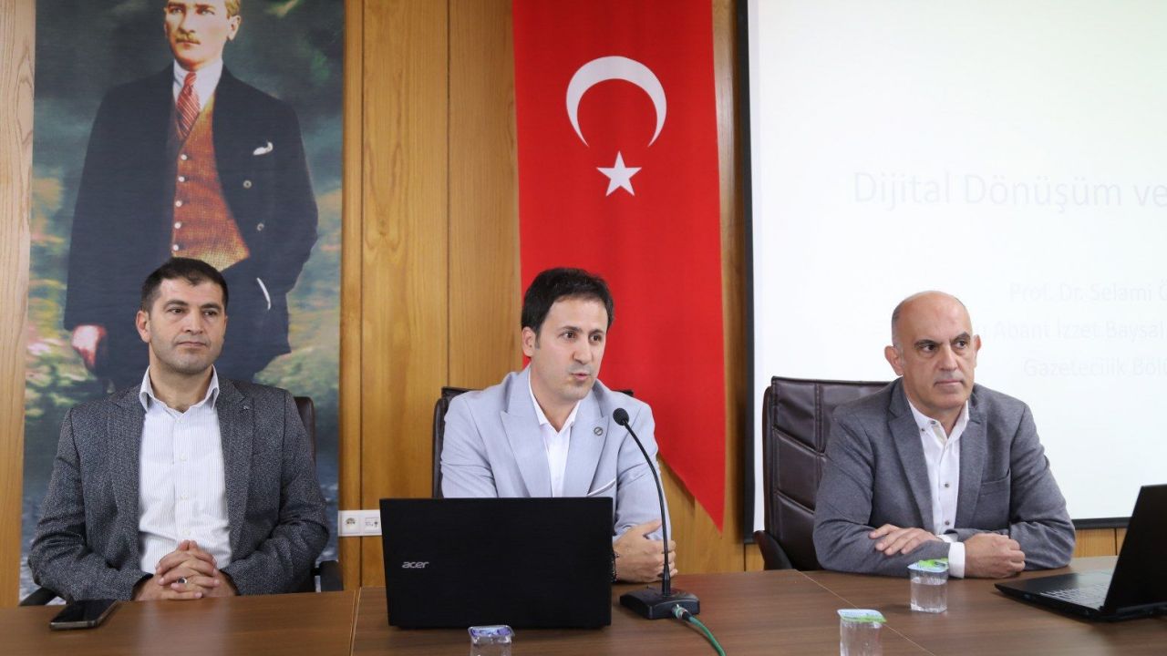 Panelde konuşan Prof. Dr. Selami Özsoy ve Prof. Dr. Yavuz Akçi, dijitalleşmenin medya üzerindeki etkilerini değerlendirdi. Özsoy, medyanın artık “üretilmiş gerçeklikler” üzerinden toplumu yönlendirdiğine dikkat çekerken, Akçi Türkiye’de sosyal medya içeriklerinin %47’sinin gerçek dışı olduğunu vurguladı. Sahte hesaplar ve algoritmalarla algıların nasıl yönetildiğini örneklerle açıkladılar.