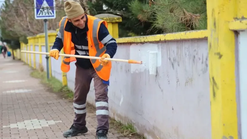 Deforme olmuş ve yazılarla kirlenmiş duvarlar, belediye ekiplerinin çalışmalarıyla yeniden boyanarak şehre yeni bir çehre kazandırılıyor.