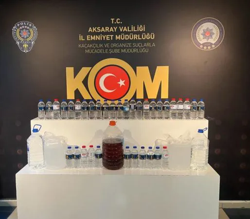 Aksaray Cumhuriyet Başsavcılığı talimatları doğrultusunda Kaçakçılık ve Organize Suçlarla Mücadele Şube Müdürlüğü ilimiz genelinde kaçakçılık faaliyetlerinin önlenmesine yönelik yapılan çalışmalar kapsamında, sahte alkol ticareti yapan bir şahsın deposunda yapılan arama neticesinde; (35) adet pet şişeler içerisinde (17.5) litre sahte alkol, (2) adet bidon içerisinde (9) litre sahte alkol, (1) adet bidon içerisinde (8) litre sahte viski, (2) adet bidon içerisinde (10) litre etil alkol, olmak üzere toplamda (44.5) litre sahte alkol ele geçirildi. Gözaltına alınan H.T. (53) hakkında 5607 Sayılı Kanun’a Muhalefet suçundan işlem yapıldı. Emniyet Müdürlüğünde tamamlanan işlemlerinin ardından sevk edildiği adli makamlarca tutuklanarak Aksaray Ceza İnfaz Kurumu Müdürlüğüne teslim edildi. Yapılan açıklamada; “Suç ve suçlularla mücadelemiz kararlılıkla devam edecektir” ifadeleri yer aldı.