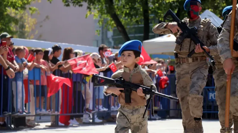 Törende komandoların kortejine eşlik eden küçük yaşta bir çocuk, asker üniformasıyla yürüyüş yaptı. “Minik komando” hem protokolden hem de izleyicilerden büyük alkış aldı ve kutlamaların sembol ismi haline geldi.