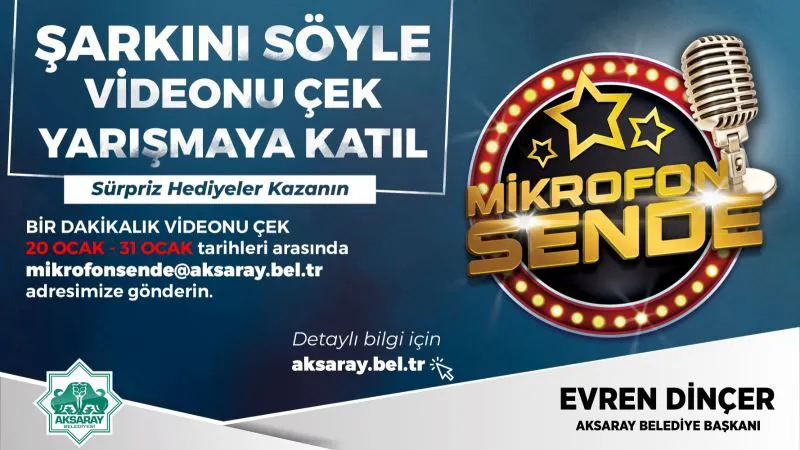 Aksaray Belediyesi, dünyayı ve ülkemizi etkisi altına alan Covid-19 salgının insanüstünde kurduğu psikolojik etkiyi azaltıp, moral olması ve sanat camiasına yeni yetenekler kazandırmak için “Mikrofon Sende” adlı ses yarışması düzenliyor.