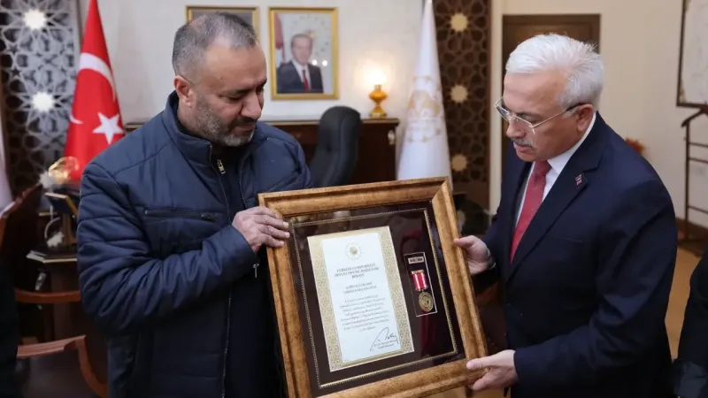 Törende, Aksaraylı şehit Lokman Akçağlayan’ın ailesine Devlet Övünç Madalyası ve Beratı, Aksaray Valisi Mehmet Ali Kumbuzoğlu tarafından takdim edildi. Vali Kumbuzoğlu, vatanın bölünmez bütünlüğü uğruna can veren tüm şehitleri rahmetle anarak, şehit ailelerinin her zaman devletin desteğini hissedeceğini vurguladı.