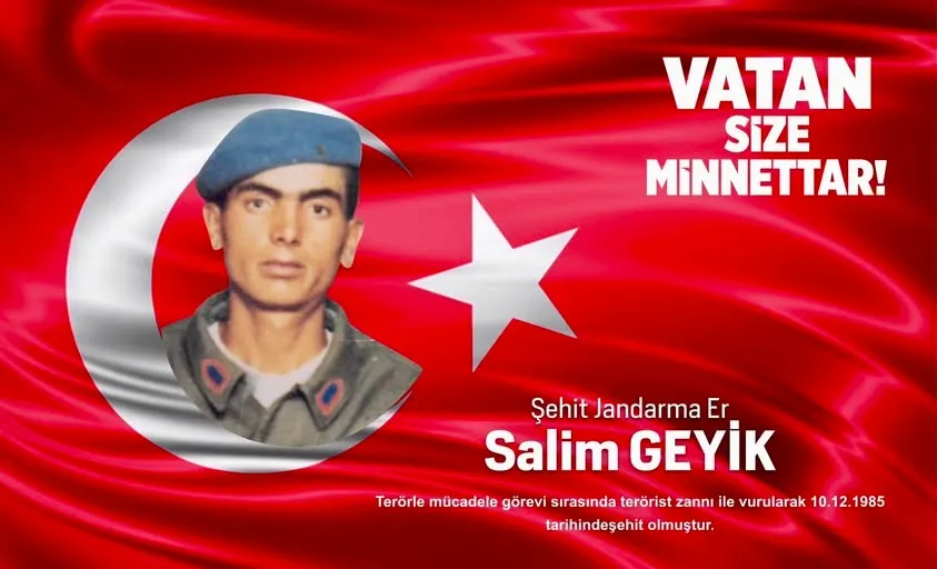 Milletimizin bağımsızlığı için can veren tüm şehitlerimizi rahmetle anıyor; Şehit J. Er Salim Geyik’in ruhunun şad, mekânının cennet olmasını diliyoruz. Aziz milletimizin başı sağ olsun.