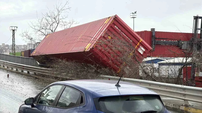 Küçükçekmece Halkalı'da bulunan eski gümrük sahasında, şiddetini giderek artıran rüzgar beklenmedik bir hasara yol açtı. Saha içerisindeki konteynırlar, güçlü rüzgarın etkisiyle devrildi.