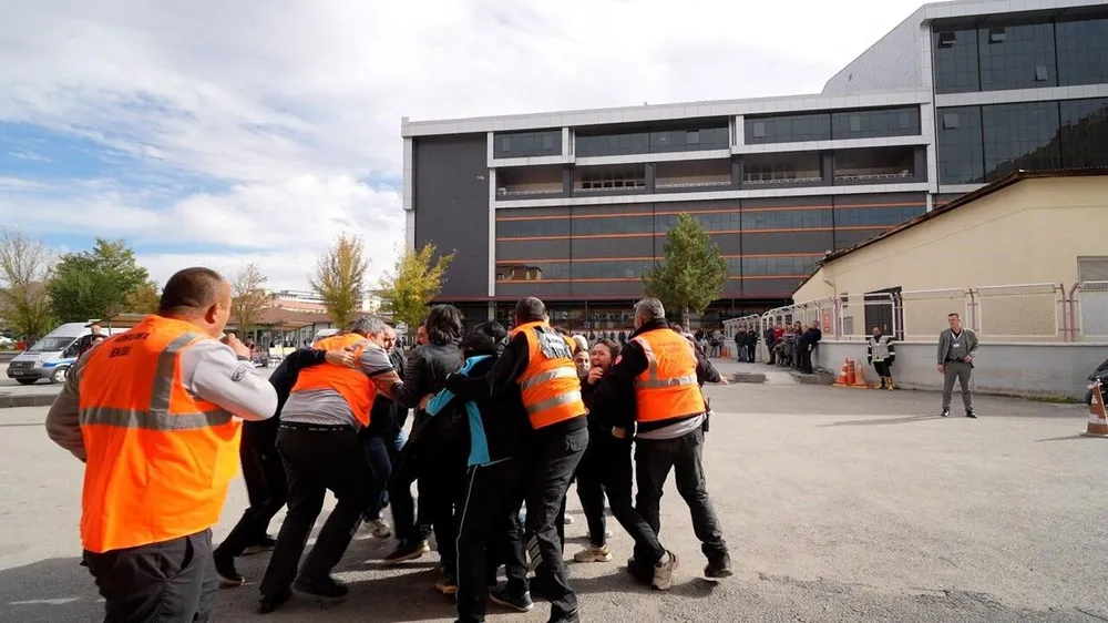Sivas Cumhuriyet Üniversitesi Uygulama ve Araştırma Hastanesi’nde yangın ve Kimyasal, Biyolojik, Radyolojik, Nükleer (KBRN) tehditlere karşı kapsamlı bir tatbikat yapıldı. Senaryo gereği yangın çıkan hastanede mahsur kalan hastalar, hızlı müdahale ile tahliye edildi.