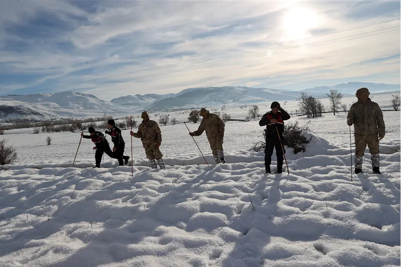 Jandarma ve komandoların da katılımıyla ekipler, karla kaplı arazide Uygun'u arama çalışmalarını sürdürüyor.