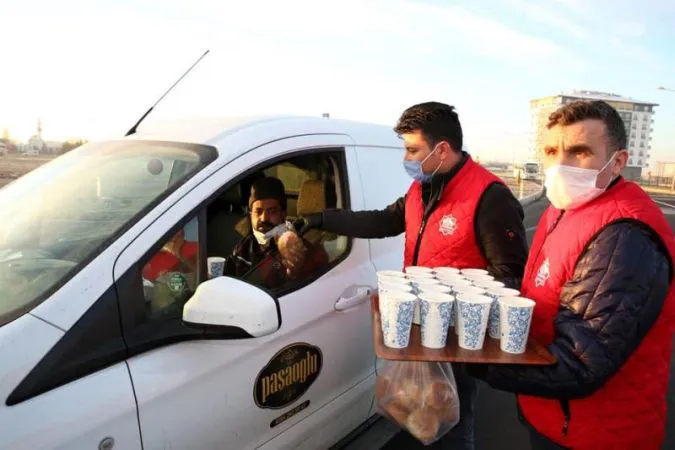 Adana ve Konya Karayolu Karasu Kavşağında çorba ikramında bulunuldu. Yolcu otobüsleri, işçi
