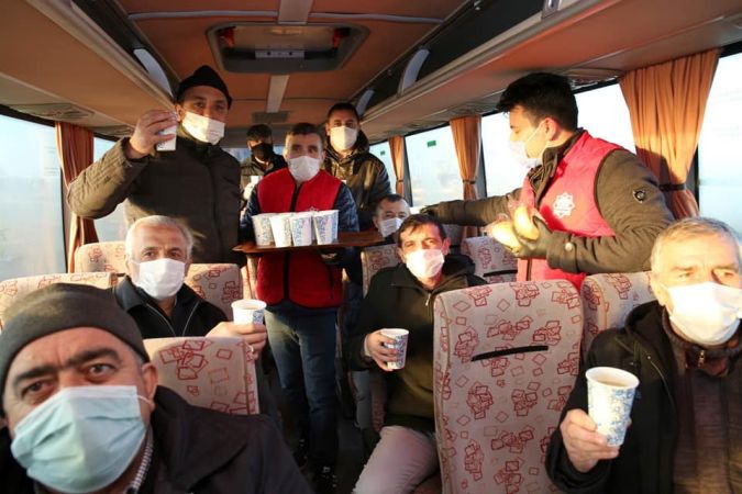 Aksaray Belediyesi Mobil Çorba Aracı ile sabahın erken saatlerinde şehirlerarası ulaşım sağlandığı