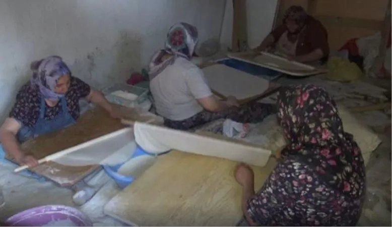 Eskil ilçesinde günün ilk ışıklarıyla hazırlıklara başlayan kadınlar, her gün bir kişinin kışlık yufkasının yapımına yardım ediyor. Akşama kadar süren hazırlık yufkalar pişirildikçe kuruması ve soğuması için bir odaya seriliyor. Kuruyan yufkalar, soğuk kış günlerinde ekmek veya börek olarak sofralarda yerini alıyor. Soğuk kış günlerinin unutulmaz lezzeti yufkalar, börekler Aksaray halkı tarafından vazgeçilmezler arasında. İmece usulü hazırlık yaptıklarını belirten Aliye Işıkaçıklamasında, 'Her yıl eylül ve ekim aylarında kış hazırlıkları için komşularla toplanırız. Ekmeğimizi, acımızı, salçamızı yaparız. Kışın yeriz. Her şeyi kendimiz yaparız. Her gün bir komşuya gideriz. Sabah başlarız, akşama kadar sohbet ederek yaparız. Yaptığımız hazırlıkları dolaba doldurur kış boyunca yeriz' ifadelerini kullandı. Haber/Foto: Birsen İN