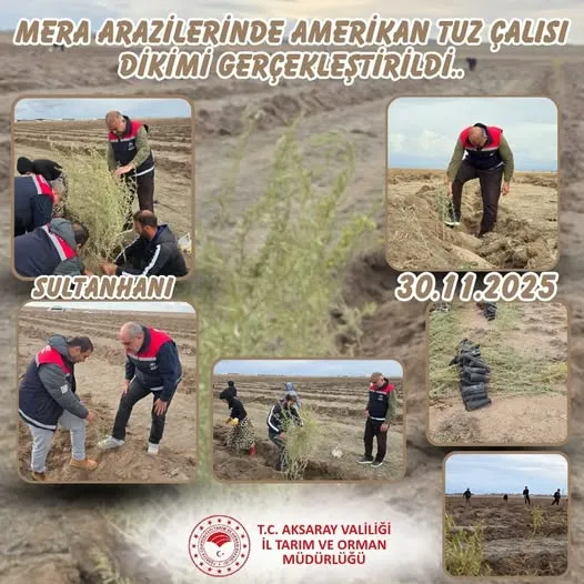 Aksaray İl Tarım ve Orman Müdürlüğü, Sultanhanı ilçesindeki meraların kalitesini artırmak amacıyla dikkat çeken bir projeye imza attı. Mera ıslah ve amenajman çalışmaları kapsamında bölgede Amerikan tuz çalısı dikimi gerçekleştirildi.