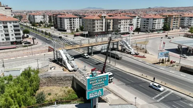 E-90 Karayolu üzerinde Aksaray Belediyesi tarafından inşa edilen Tacin Yaya Üst Geçidi’nde çelik konstrüksiyon montajı tamamlandı. Projenin ilerleyen safhalarında yürüyen merdiven, asansör ve çevre düzenlemesi gibi detaylarla üst geçit, modern bir ulaşım yapısına kavuşacak. Belediye Başkanı Dr. Evren Dinçer, bu tür projelerin şehirdeki yaya güvenliğine katkı sağladığını belirtti.