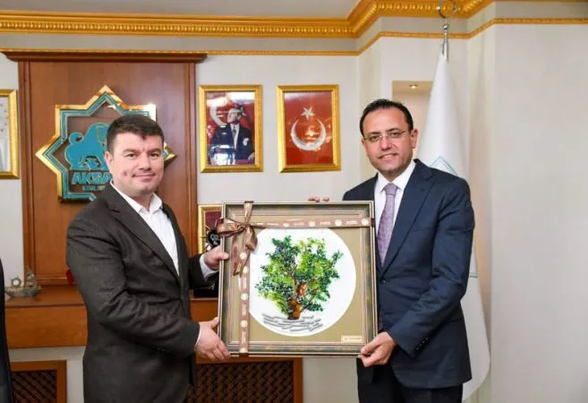 Belediye Başkanı Dinçer, ziyaretin anısına Bakan Yardımcısı Ebubekir Gizligider’e tablo takdim etti.