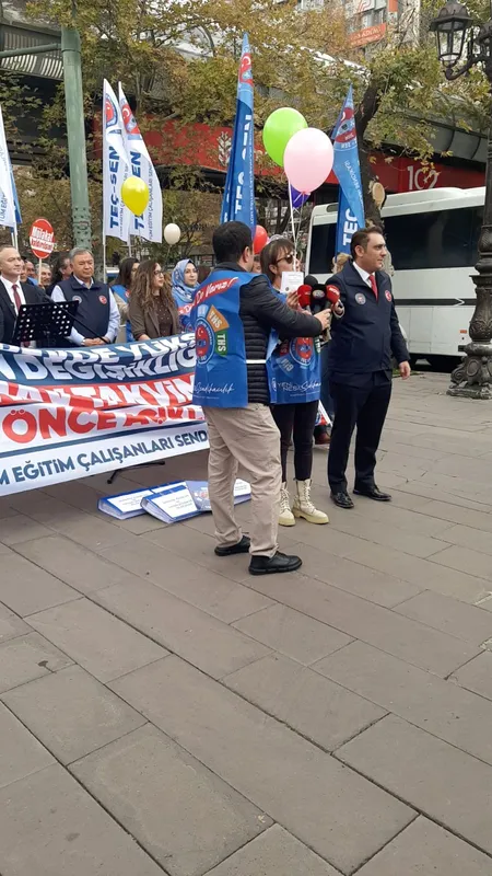 TEÇ-SEN ve DMK üyeleri, görevde yükselme ve unvan değişikliği sınavlarında yaşanan sorunlara dikkat çekmek için Milli Eğitim Bakanlığı önünde bir araya geldi. Sendika yetkilileri, mevcut sistemin çalışanların kariyer planlamalarında belirsizliklere yol açtığını vurgulayarak, topladıkları dilekçeleri bakanlığa ileteceklerini açıkladı.