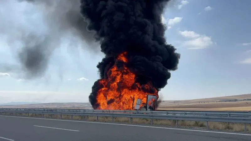 Gökyüzünü simsiyah dumanın kapladığı yangında sürücü canını son anda kurtarırken, tırın dorsesi yanarak küle döndü. Yangın, Niğde - Ankara Otoyolu Alayhan Gişelerde çıktı. Edinilen bilgiye göre, İstanbul’dan Aksaray Organize Sanayi bölgesinde bulunan bir fabrikaya plastik ham maddesi götüren İskender Ş. (36) yönetimindeki 34 BZN 673 plakalı tır, Alayhan gişelerine geldiğinde dorse lastiği patladı. Lastiğin patladığını fark etmeyen sürücü yoluna devam ederken, lastiğe bağlı jantın asfaltla sürtünmesinden dolayı kıvılcımlar çıkarttı. Kıvılcımlar plastik ham madde yüklü dorseye sıçrayarak yangına neden oldu. Dorseden çıkan alevleri fark eden sürücü tırı hemen kenara çekerek canını son anda kurtardı. Tır kabinini dorseden ayıran sürücü kendiyle birlikte kabini de yanmaktan kurtarırken, dorse kısa sürede adeta alev topuna döndü. Alev alev yanan dorseden çıkan dumanlar gökyüzünü siyaha bürüdü. Haber verilmesi üzerine olay yerine polis, jandarma, itfaiye ve sağlık ekibi sevk edildi. Olay yerine gelen polis ekipleri yolda güvenlik önlemleri alırken, Saratlı Belediyesi ve Ortaköy İlçe Belediyesi itfaiye ekipleri de yangına müdahale etti. 5 ayrı itfaiye aracıyla yangına müdahale eden itfaiye ekipleri 2 saat süren zorlu bir mücadele sonucu yangını tamamen söndürebildi. Yangın sonrası dorse küle dönerken, otoyolda yaklaşık 3 kilometre araç kuyruğu oluştu. Yangınla ilgili soruşturma başlatıldı.