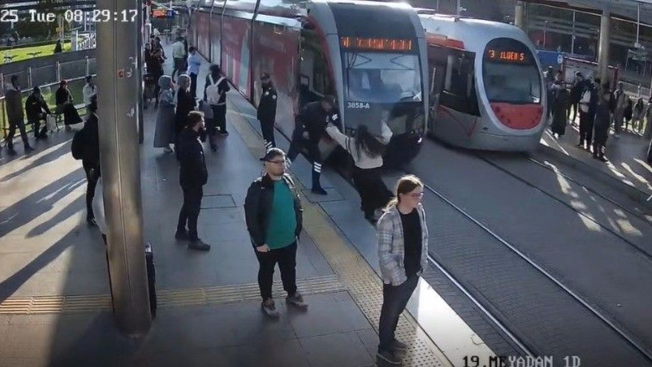 Görgü tanıklarının ifadelerine göre, genç kız kulaklık taktığı için yaklaşan tramvayı fark etmedi. Ray hattına adım atmak üzereyken durumu fark eden güvenlik görevlileri, refleksle müdahale ederek kızı raylardan uzaklaştırdı. O anlar hem güvenlik kameralarına hem de tramvay içi kameralara saniye saniye yansıdı.