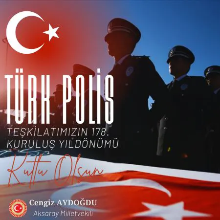 Aksaray Milletvekili Cengiz Aydoğdu Türk Polis Teşkilatı’nın Kuruluş Yıldönümü Münasebetiyle mesaj yayınladı.