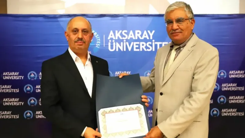 Öğrencilerin ve akademisyenlerin takip ettikleri konferansın ardından ASÜ Rektör Yardımcısı Prof. Dr. Ömer Köse, sunumundan dolayı Prof. Dr. Ertuğrul Yaman’a teşekkür belgesi takdim etti.