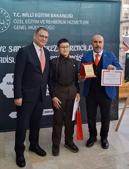 29 Aralık 2025’te Millî Eğitim Bakanlığı Şûra Salonu’nda düzenlenen ödül töreninde Ali Efe Meral, başarı belgesi ve ödülünü Özel Eğitim ve Rehberlik Hizmetleri Genel Müdürü Doç. Dr. Mustafa Otrar’dan aldı. Tören, öğrencinin başarısını taçlandıran anlara sahne oldu.